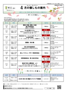 【ホール・ギャラリー】のご案内 4月の催しもの案内
