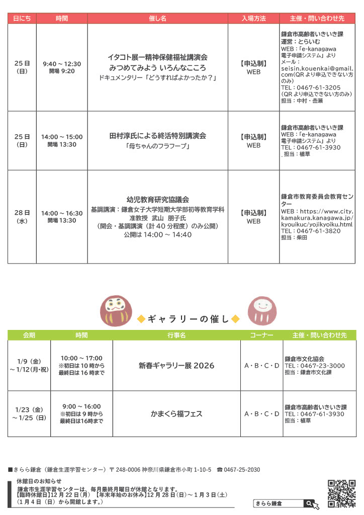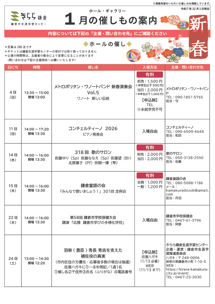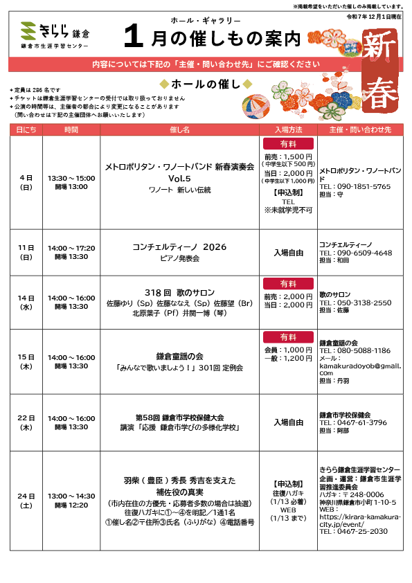 【ホール・ギャラリー】のご案内 1月の催しもの案内